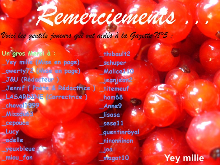 Bravo!!!!!!!!!!!!!!!!!!! Cette gazette est super!!!(comme d'habitude ^^)